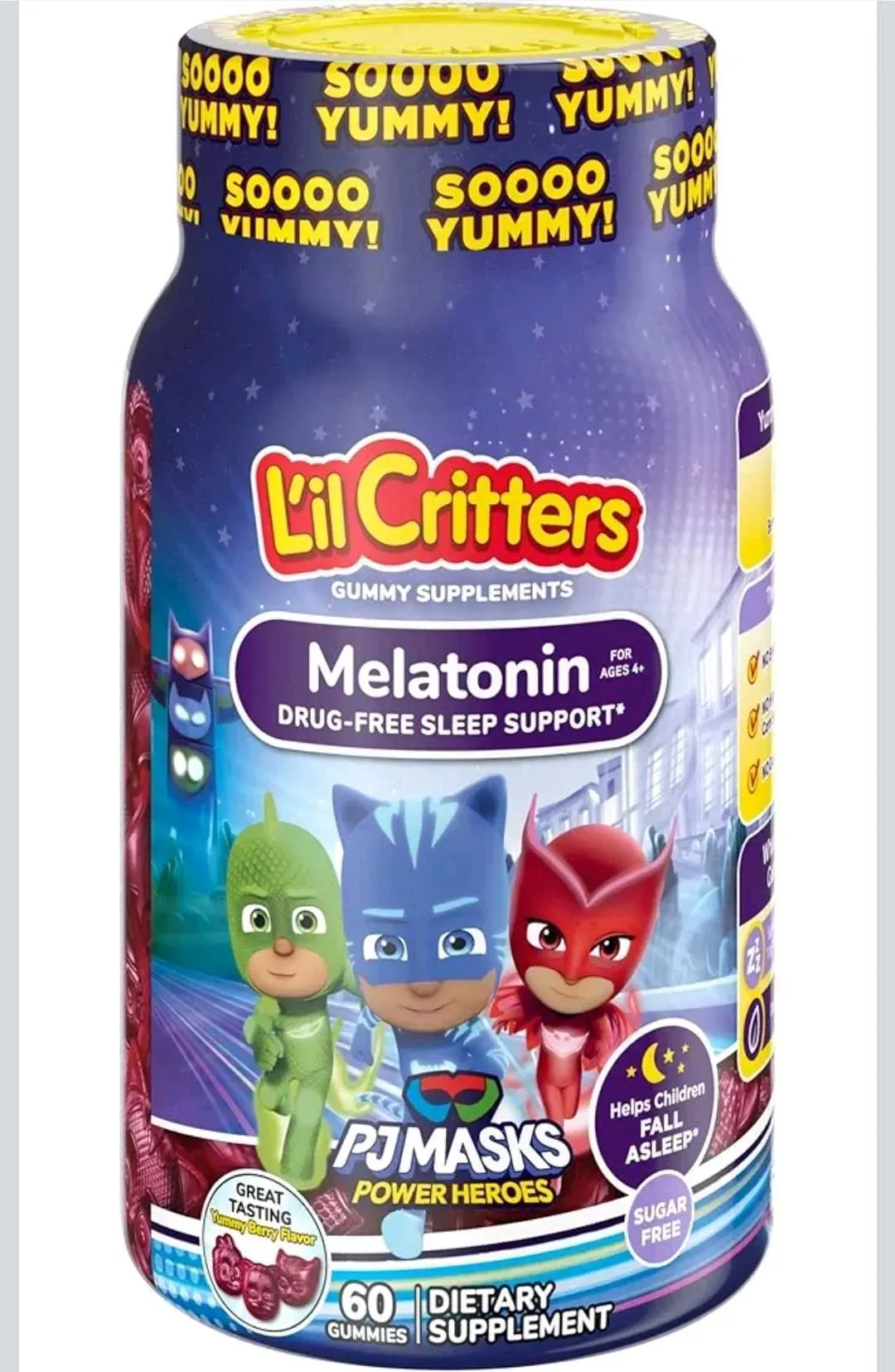L'il Critters PJ Masks - Suplemento de melatonina para niños, apoyo para dormir sin drogas, 60 gomitas